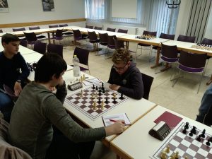Die 2. Mannschaft bekam es in der Aufstellung Cornelius, Alexej, Stefan und Julian mit dem SK Gießen zu tun. Cornelius konnte als Erster einen Sieg verbuchen, kurz danach kam auch Alexej mit einem vollen Punkt in den Analyseraum. Deutlich länger hingezogen haben sich dann die Partien an den beiden Brettern 3 + 4. Julian steuerte letztlich ein Remis bei und Stefan konnte seine Partie in der Zeitnotphase seines Gegners gewinnen.