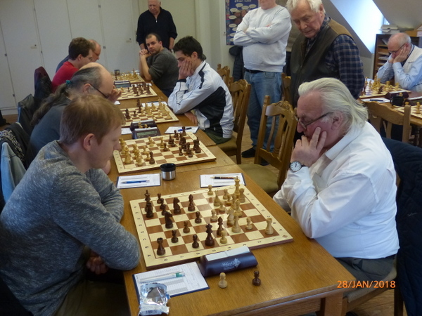 Unerklärlich im Spielverlauf war dann, dass Manfred Kühlmeyer, ein sehr sicherer und routinierter Spieler, nach ca. 1 Stunde mit seinem Läufer zwar das Feld b4 anpeilte, aber so unglücklich absetzte, dass er dem (gedeckten) Feld a3 zugeordnet werden musste und das Spiel mit Läuferverlust beendet war. Im weiteren Spielverlauf verlor Ramat Faqiry nach einem zu ungestüm vorgetragenen Angriff sehr schnell seine Partie.