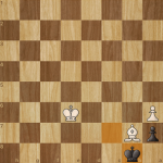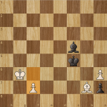 Die spätere Turniervierte war Jans Gegnerin in Runde fünf. Es handelte sich um Katharina Bangiev, die - wie sich später herausstellte - bereits an ihrem 31. Turnier teilnahm und die Tochter des Internationalen Meisters Alexander Bangiev ist, welcher die nach ihm benannte Bangiev-Methode entwickelt hat . Während der Eröffnung gelang es ihr, sich einen Bauern Vorsprung zu erarbeiten. Dabei blieb es auch bis zum 49. Zug. Dann musste Jan seinen letzten Läufer opfern, damit seine Gegnerin ihren (zusätzlichen) Bauern nicht in eine Dame umwandeln konnte (siehe li. Diagrammstellung). Sie hatte nun einen Bauern auf a6 und einen weißfeldrigen Läufer. In den Endspieltheorien wird diese Konstellation als klare Gewinnstellung geführt. Jan hatte jedoch noch einen letzten Bauern auf a7 - der einzige Spielstein, welcher während der gesamten Partie nie gezogen wurde. Jan blieb mit seinem König immer auf den Feldern b8 und c7 (siehe re. Diagrammstellung). Nach 160 Minuten wurde sich auf ein Remis geeinigt. Anschließend hat sogar die Turnierleitung noch beraten, ob es für Weiß nicht doch noch möglich gewesen wäre, diese Partie zu gewinnen.