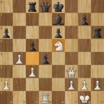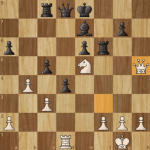 Hier ist mir im 22. Zug eine Läufergabel auf König und Dame gelungen. Danach war das Spiel quasi entschieden. Bei der Analyse fiel dann auf, dass ich im 21. Zug bereits einen Läuferspieß auf König und Dame hätte durchführen können.