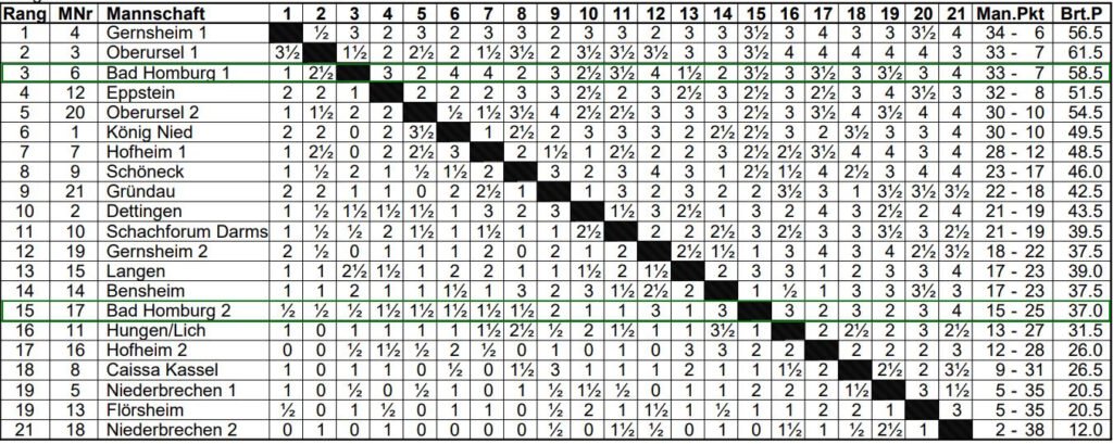Meister wurde etwas überraschend der SK Gernsheim vor dem Ex-Zweitligist Oberursel. Herzlichen Glückwunsch!