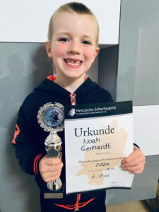 Die Betreuer der Hessischen Schachjugend (HSJ) sorgten mit ihrem Bastel- und Spieleangebot in gewohnter Manier für kurzweilige Pausen. Zwischen den Pausen, sorgte in den sieben Runden insbesondere Noah als jüngster Teilnehmer des Turniers für einige Aufmerksamkeit als er sich durchweg an den oberen Brettern festspielte.