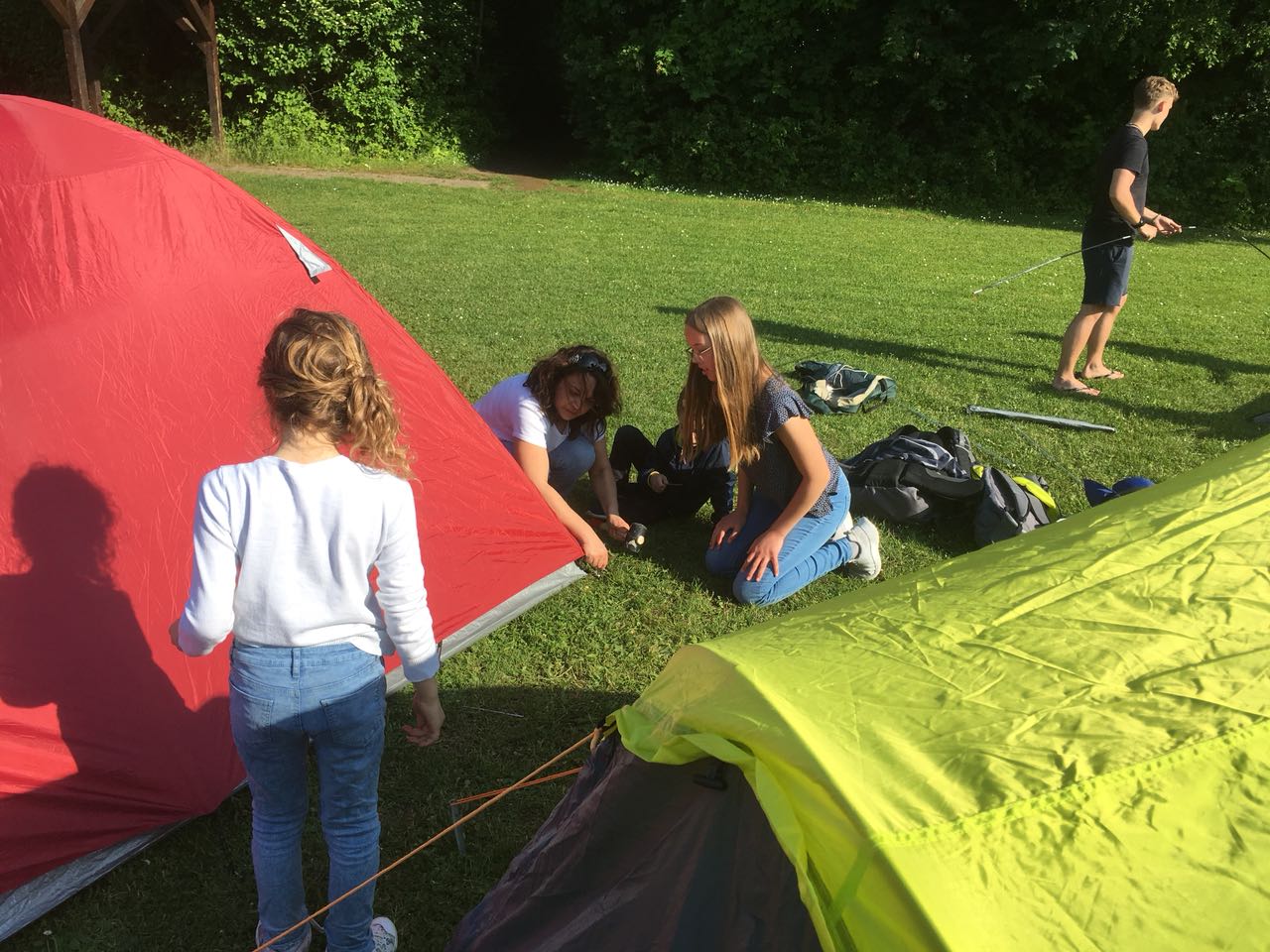 Fenja beim Zeltaufbau Nach 2 anstrengenden Turnierpartien kommt erst noch der Zeltaufbau vor der wohlverdienten Ruhe.