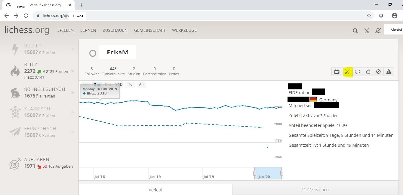 LiChess 05 – Zu einer Partie herausfordern Wurde sich auf einen Termin geeinigt, dann kurz vor Beginn der Partie oben rechts auf die kreuzenden Schwerter klicken ("Zu einer Partie herausfordern")