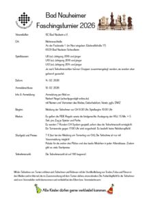 Ausschreibung Bad Nauheimer Faschingsturnier 14.02.2026 Ausschreibung Bad Nauheimer Faschingsturnier Veröffentlicht am 18. Dezember 202518. Dezember 2025 Ausschreibung Bad Nauheimer Faschingsturnier