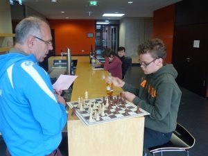 Für Bad Homburg gingen Cornelius, Alexej, Jan und Liam an den Start. Gespielt wurde wie immer Hin- und Rückrunde direkt hintereinander, und in beiden Runden kam Liam recht zügig mit einem vollen Punkt aus dem Spielsaal.