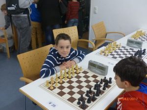 Mit Luis und Philipp gingen 2 unserer neuesten Vereinsmitglieder an den Start. Beide sind erst in diesem Halbjahr in den Verein eingetreten, sind beim Training aber immer mit viel Elan und Spaß bei der Sache und schnupperten hier auch ihre erste Meisterschaftsluft. Wobei Philipp immerhin schon mal erste Schachturnierluft beim 1. ABC-Cup Anfang der Herbstferien schnuppern konnte. Wie bei allen Turnierneulingen üblich wechselten Licht und Schatten von Runde zu Runde, aber sie blieben nicht sieglos. Philipp konnte sich über 2 Gewinnpunkte und den 48. Platz freuen, da auch er im nächsten Jahr erneut in der U8 an den Start gehen darf ist auch das ein prima Start in die Meisterschaftsarena gewesen. Luis konnte sich mit 2 Siegen in den beiden Schlußrunden sogar noch auf 3 Punkten und damit Rang 39 freuen, Als absoluter Turnierneuling auch ein wirklich tolles Ergebnis.