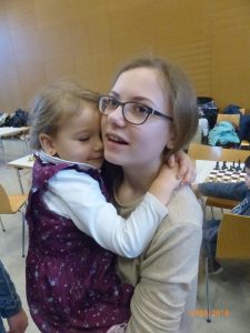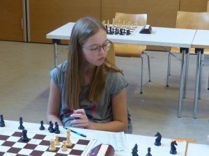 Leider kam bei den Mädchen am zweiten Tag Sand ins Getriebe. Sie versuchten beide mutig, Zugwiederholungen auszuweichen, aber verloren dann die beiden Top-Spiele gegen die späteren Turniersieger (Glückwunsch an Alice Polak (U16) und Sifan Wu (U14), Endergebnis hier) und mussten mit den kleineren Pokalen vorlieb nehmen. Schade, aber Jugendturniere sind immer schwere Turniere!