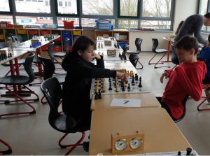 Marco war unser Teilnehmer in der Gruppe der Zweitklässler. Hier erzielte er stabile vier Siege und zwei Niederlagen. Ein fünfter Sieg war in greifbarer Nähe, doch leider setzte er seinen Gegner nur Patt. Mit 4,5 Punkten kam er auf den vierten Platz bei sechszehn Teilnehmern.