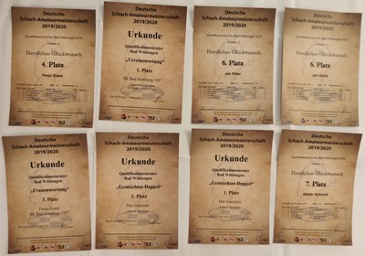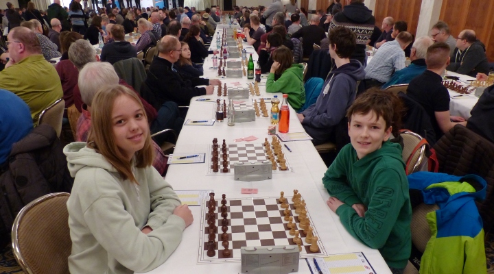 Für den Schachklub wurde es fast ein 74, aber dann fanden sich noch 2 Teilnehmer und es wurden sogar 9 hiesige Spieler in Bad Wildungen. Und das war schon der erste Titel, wenn auch geteilt: Kein anderer Verein brachte in Nordhessen mehr Spieler an die Bretter, wie zur ersten Runde verkündet wurde.
