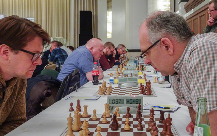 Stephan Geyer und Jan Goetz waren stets an den vorderen Brettern zu finden - und holten beide 3½ Punkte!Anspannung auch im A-Turnier, rechts Walter Schmidt (Foto: Deutscher Schachbund)
