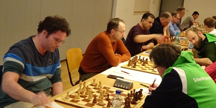 Einer der Neuberger war aus familiären Gründen (Herzlichen Glückwunsch! auch vom SK Bad Homburg) verhindert, so dass die Gäste zu siebt antraten und Walter Schmidt einen kampflosen Punkt mitnehmen konnte.
