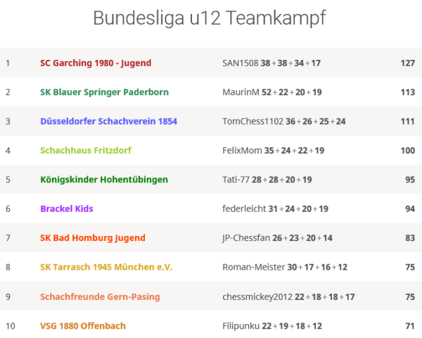 Garching, Paderborn, Düsseldorf, Tarrasch München: Illustre Gegnernamen zierten das Starterfeld des Turniers.