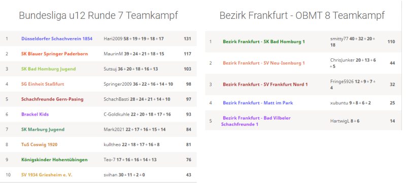 An diesem Wochenende gab es wieder das inzwischen übliche Online-Team-Schach, und die Kurstädter mischten jeweils oben mit.