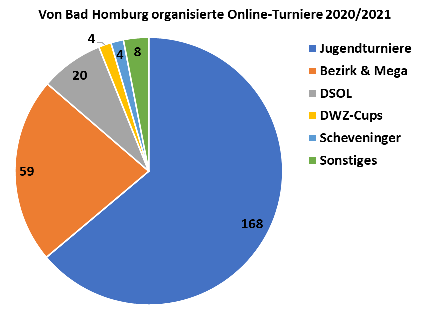 Nicht aufgelistet sind viele private Teilnahmen sowie die U12-Bundesliga oder DSJ/HSJ-Turniere und ähnliche Events, an denen der Verein einfach nur teilgenommen hat. Ebenfalls ganz wichtig (und durchaus aufwändig): Viele Online-Trainings-Stunden mit der daran interessierten Schachjugend Bad Homburgs.