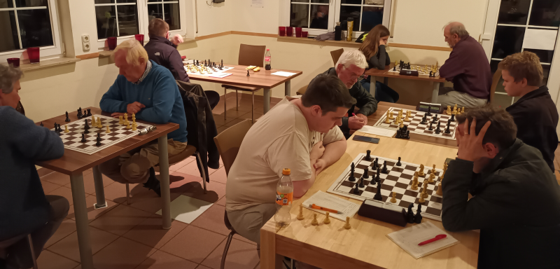 Zum Spielabend: Neben wenigen freien Partien wurden vor allem 3 Vereinsmeisterschaftspartien gespielt und damit die erste Runde in Gruppe B auch schon beendet.