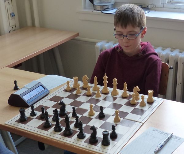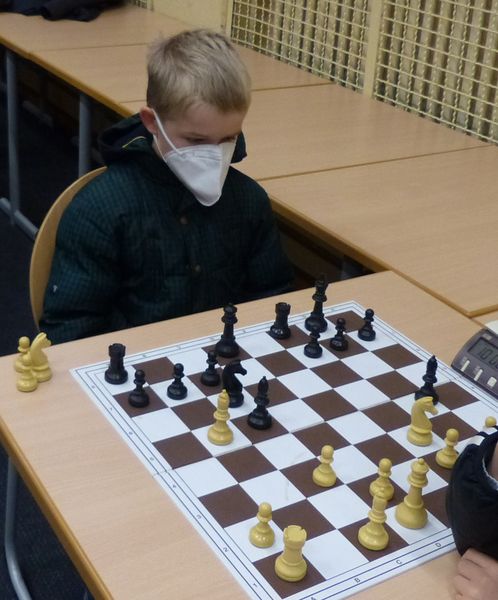 Hier kam es lt. Jugendleiter Hendrik Raab zum wohl spielstärksten Duell dieser Altersklasse der ganzen letzten Jahre, wenn nicht Jahrzehnte: Justus und Roman (TuS Makkabi) hatten über 1700 DWZ und dominierten das Feld. Das Losglück wollte es, dass die beiden in der Schlussrunde aufeinander trafen und so den Titel im direkten Vergleich ausspielten. Die Partie endete mit einem Remis - und damit ehrenvolles Silber für Justus nach Zweitwertung.