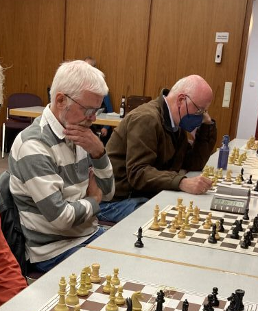 Die Senioren Jürgen Benz und Mathias Schrader hatten den kürzesten Weg und auch das kürzestes Turnier: Die Bezirks-Senioren-Meisterschaft hatte ihr erstes Ziel beim SV Oberursel, wo sich insgesamt 12 Ü50-Spieler einfanden und sich im Schnellschach maßen.