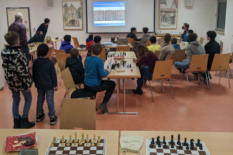 Dabei reichte das Spektrum von leichten zu schweren Aufgaben. Als schwierigste Nuss entpuppte sich Aufgaben Nummer 9 (Pachmann - Gunnarson). Hier ist nur die Lösung 1. Tdxd7+ Txd7 2. Db5 richtig, was nur 2 Teilnehmer-Paare in Gruppenarbeit herausfanden.
