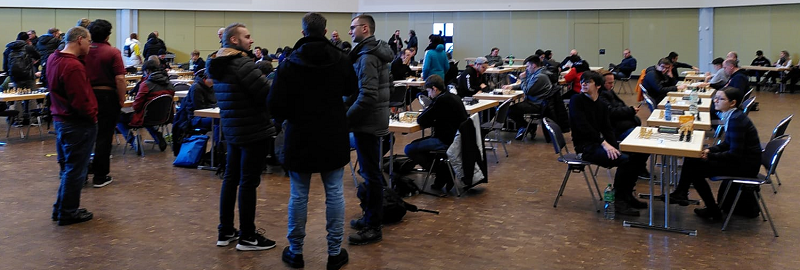 Letztlich fanden 82 Teilnehmer den Weg nach Bergen (ÖPNV aus dem Hochtaunuskreis leider etwas abseitig), wobei das Feld ausgesprochen stark besetzt war: Ein Großmeister, ein Internationaler Meister, viele Fide-Meister und Spieler über 2200 DWZ!