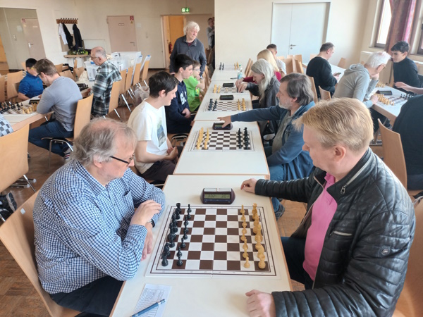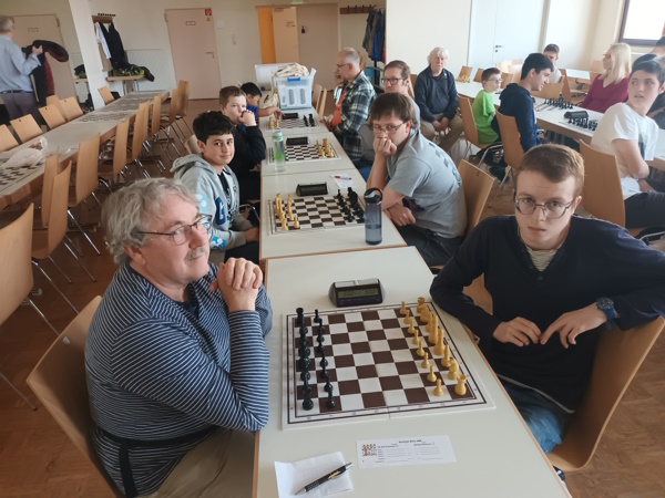 Und last but not least ein großes Lob an Karl-Heinz, Danail, Till und Thomas, die sich in das für sie sehr starke Turnier wagten und immer mal Punkte holten - und leider auch Siege (z.B. gegen Vereinskamerad Jan 🙂 ) verschenkten. Aber das gehört zum Lernen dazu! Am Ende hatte jeder zwischen 2 und 3,5 Brettpunkte auf dem Konto! Gut so.