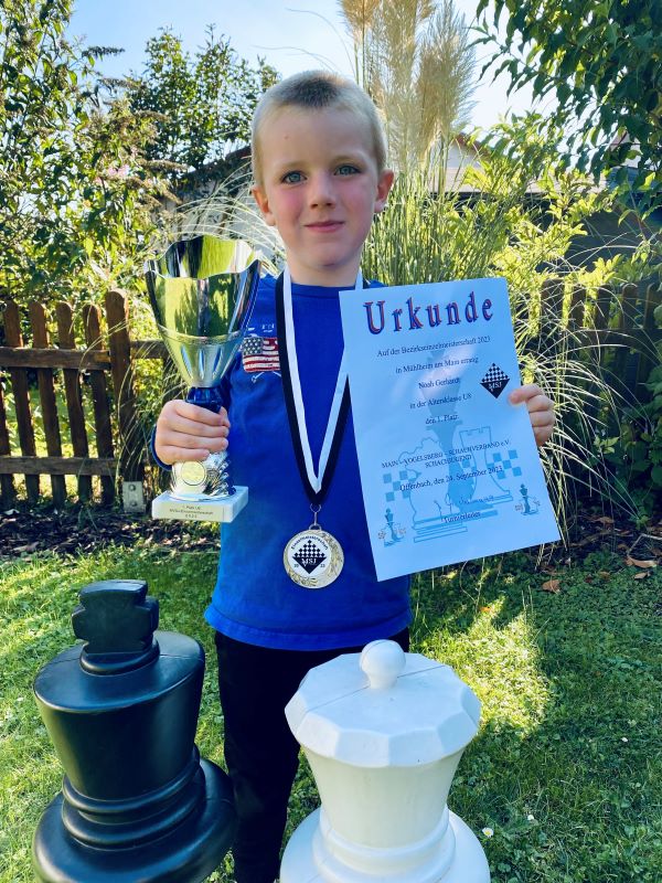 Noah beeindruckte von Anfang an und sicherte sich mit nur einer Niederlage souverän den Gesamtsieg sowie seinen ersten Bezirksmeistertitel. Für Vivaan war dieses Turnier sogar sein allererster Schachwettkampf, und er erreichte auf Anhieb den dritten Platz in der U8.