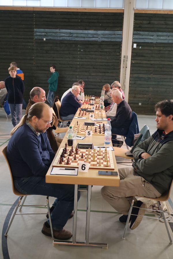 Kurz danach konnte Otto an Brett 3 nach etwas schwächerer Eröffnung kampfkräftig fortsetzen und ein Remis zum Gesamtergebnis beitragen. Also: 2,5 zu 0,5.