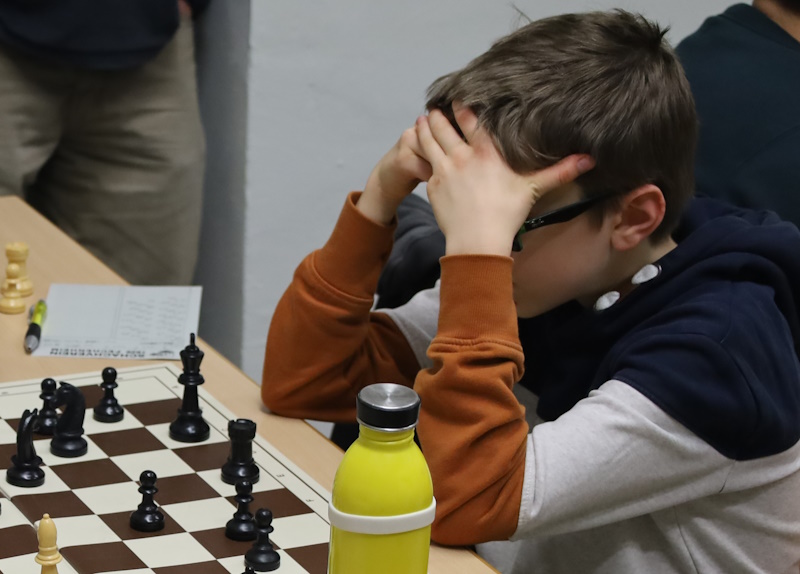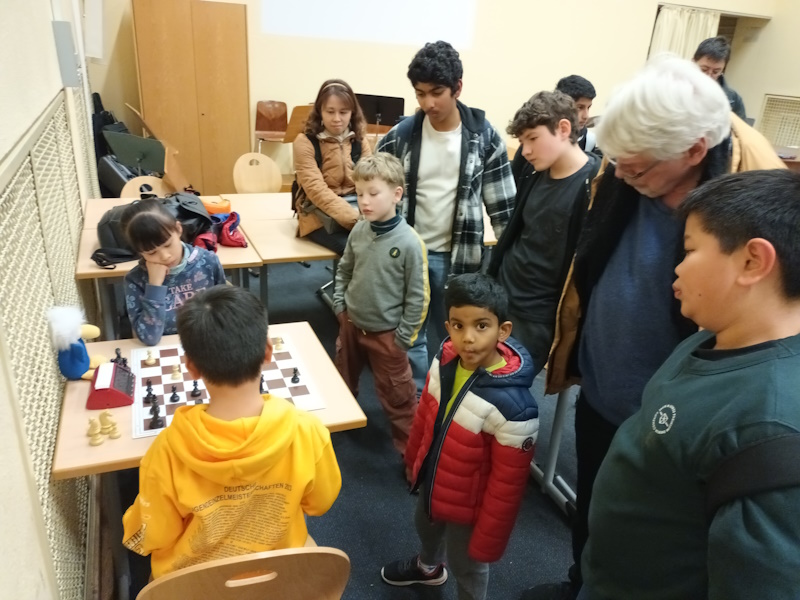 Die U14 wurde eine ganz sichere Beute von Justus, der das Turnier in der 4. Runde mit einem Sieg über seinen Kumpel Roman (TuS Makkabi) entschied. Und zwar konnte er die Dame fangen.