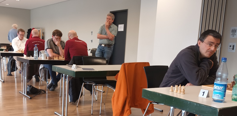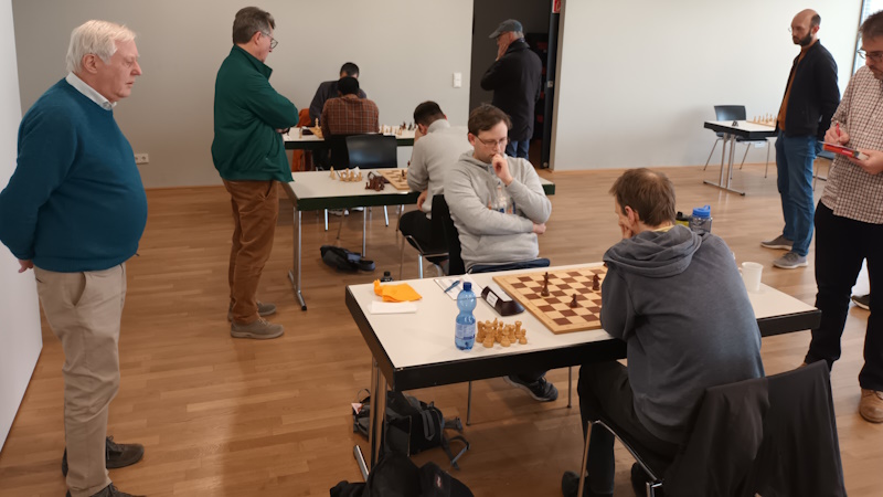 Der Spielverlauf erwies sich dann zunächst durchaus chancenreich: Walter Schmidt, Ralf Dunsbach und Uli Wolf mit eher schnellen Remisen holten zwar zunächst nur für unwesentlich gehaltene Brettpunkte.