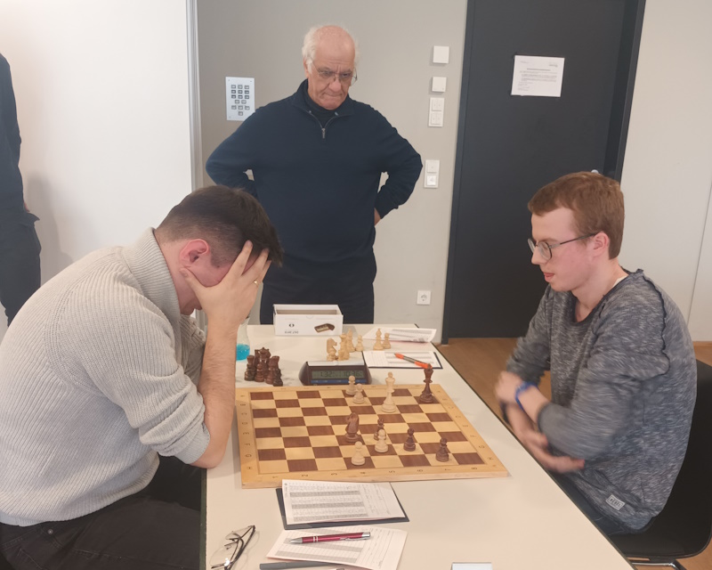 In der Zeitnotphase konnten zunächst Behrang Sadeghi am Spitzenbrett und Jonas Lenz ebenfalls ein Remis erzielen - letzterer aus der Position der Stärke heraus.