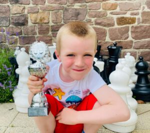 Nur einen Tag später, am 16. Juni, ging Noah bei seinem vermutlich letzten U6-Turnier, dem Karlsruher Jugendopen, an den Start. Souverän meisterte er seine Favoritenrolle, gewann alle 5 Runden Schnellschach und konnte sich über den nächsten Pokal freuen. Die Kreuztabelle findet sich hier.