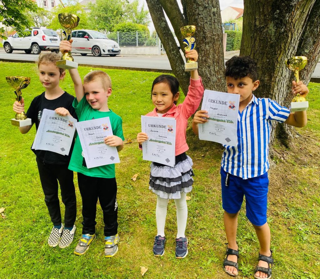 Bereits ein Wochenende später am 22. Juni beim Dünsbergpokal gingen Till in der U16, sowie Noah und Weiyi in der U8 an den Start. Till holte in dem starken Teilnehmerfeld 3,5 Punkte, Weiyi freute sich über 3 Punkte und mit 5,5 Punkten aus den 7 Runden konnte Noah sich diesmal über den Pokal für den zweiten Platz freuen. Die Tabellen aller Altersklassen gibt es hier.