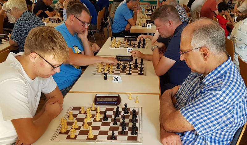 Als Thomas und Martin 3 Punkte auf dem Konto hatten, rief Stefan Erdmann das durchaus ehrgeizige Ziel "5 Punkte" aus - und er wurde nicht enttäuscht! Die beiden holten 6,5 bzw. 6 Punkte und erspielten eine Elo-Leistungszahlen von um die 1800! Wahrlich ein gutes Ergebnis. Claus hatte da mit 5,5 Punkten sogar noch das Nachsehen.