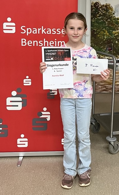 Im B-Open wurde Thomas mit der besten Buchholzzahl Fünfter, Helena und Aurelia landeten ebenfalls im Mittelfeld. Dabei landete die jüngere Schwester dieses Mal sogar weiter oben und - siehe Bild - holte den Frauenpreis im B-Open!