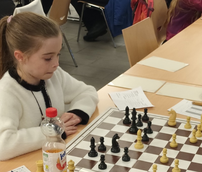 Emily hatte vorher weit gerechnet und gesehen, dass sie einen Bauern mehr behalten würde. Aber dann ging dieser doch verloren - schade, aber eine schöne Partie, die auch das Lob des Gegners (Gewinner des Fortuna-Schachpokals) einheimste!