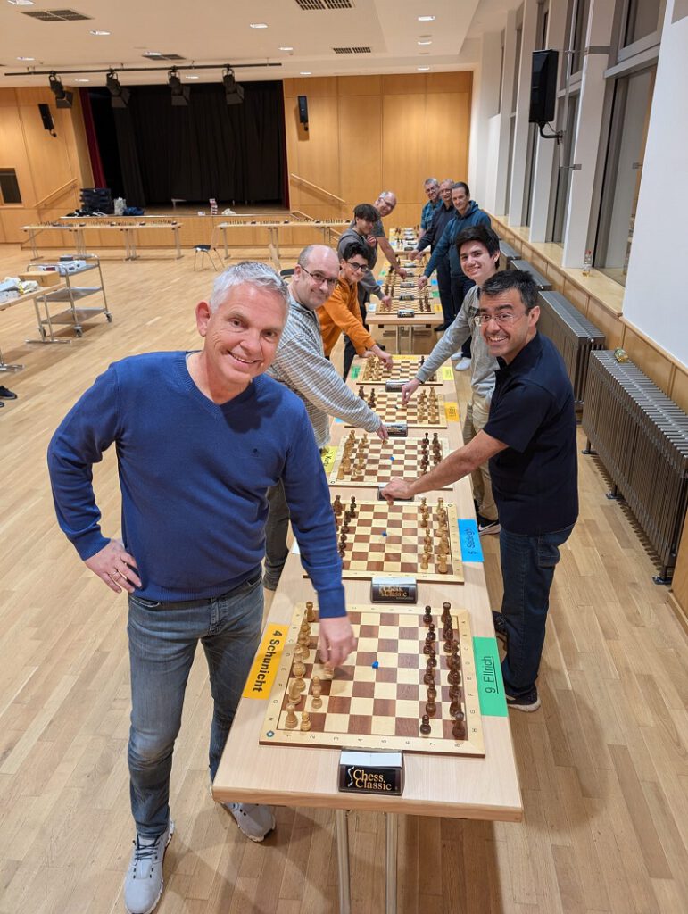 Nach 4 Stunden gewann Jochen Ellrich, der in der Tabelle 4 Remisen gegen die hinter ihm einlaufenden DWZ-Favoriten holte und gegen die hintere Hälfte der Tabelle durchpunktete.