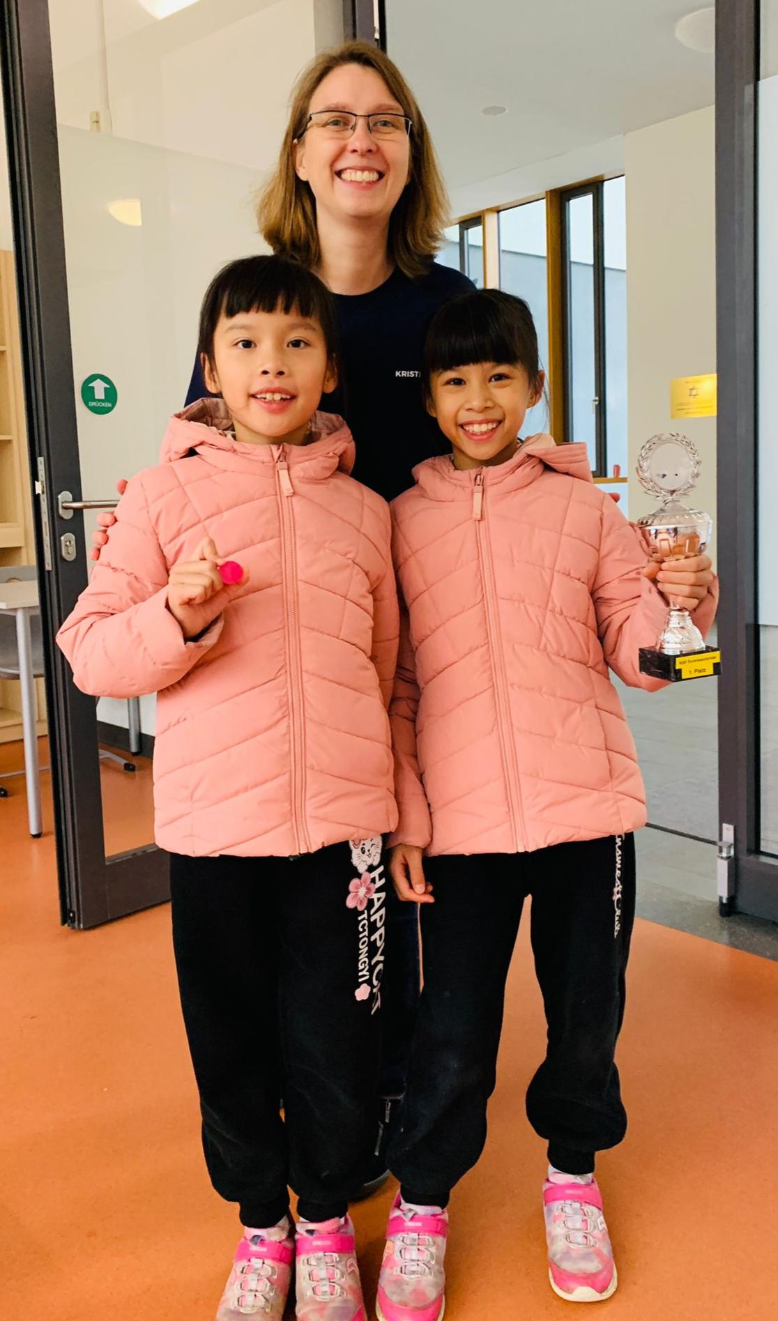 Thea und Dora reisten nach Karlsruhe zum ersten Sonntagsturnier, wo ein dreirundiges Turnier mit langer Bedenkzeit ausgetragen wurde. In der Gruppe A glänzte Thea mit drei Siegen und sicherte sich souverän den ersten Platz. Dora, die lediglich gegen ihre Zwillingsschwester unterlag, erreichte einen starken zweiten Platz.