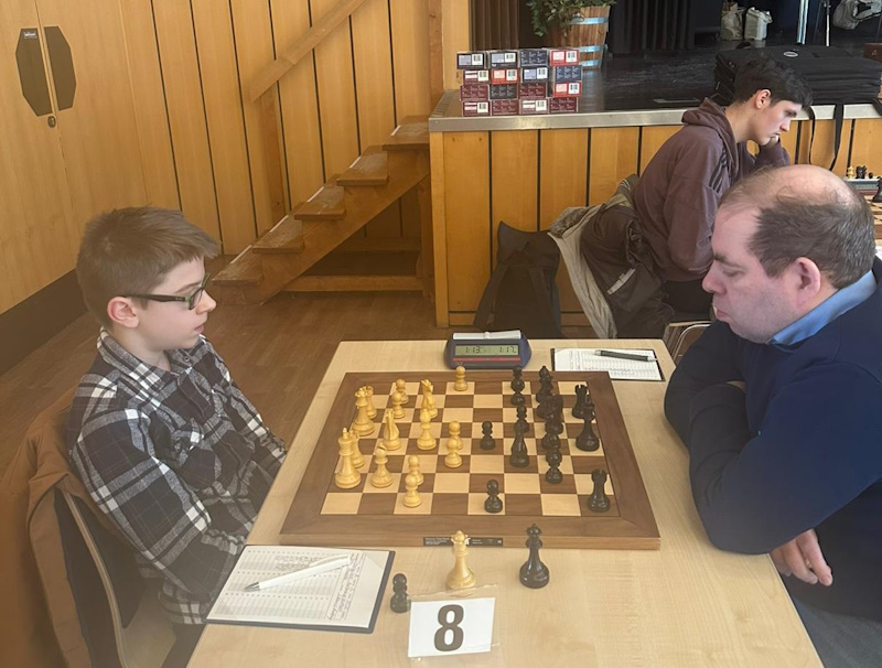 In der Partie lief es dann auf ein kompliziertes ungleichfarbiges Läuferendspiel mit 2 Minusbauern hinaus, das Jonas dank genauen Spiels - und auch weil der Gegner nicht alles richtig machte - zum 2,5:5,5 Endstand remisieren konnte.