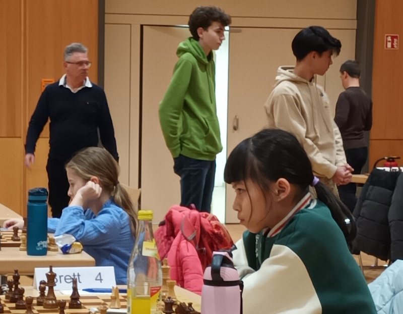 Dagegen legte Bad Homburg VI in der Kreisliga los wie die Feuerwehr. Einem kampflosen Punkt von Emily (leider schon der zweite) folgten schnelle Siege von Yunsheng und Dominik sowie ein Remis von Sarvesh, was schon den Gesamtsieg sicherstellte.