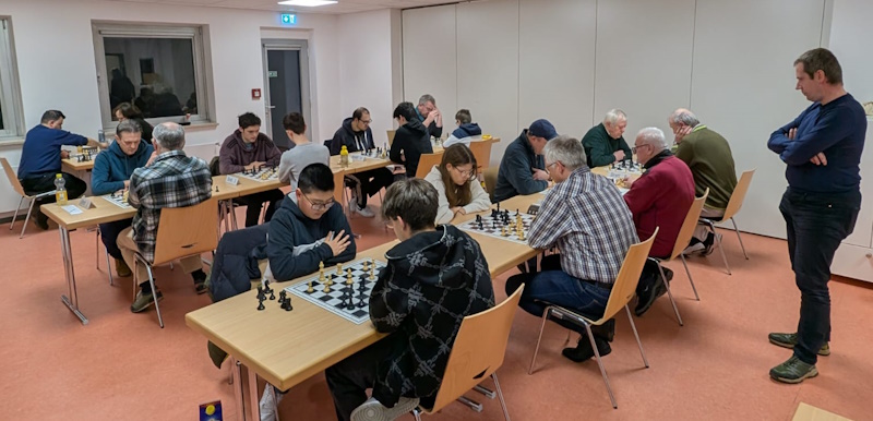Letzter Januar-Tag, erstes Monatsblitz: Es wurde mit 19 Teilnehmern ein gut besuchtes Turnier und da die Spitze ziemlich breit aufgestellt war, hatte nach 13 Runden Schweizer System jeder Federn gelassen.
