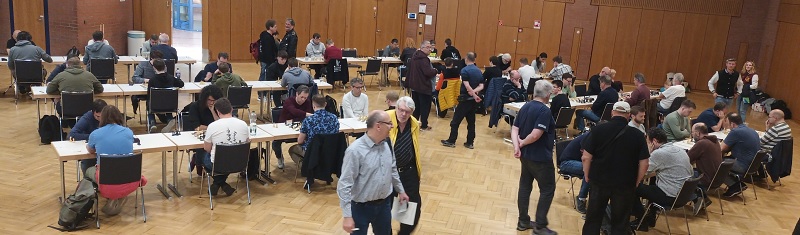 Die von König Nied zum 64. Jubiläum ausgetragene Hessische Blitz-Meisterschaft für 4er-Mannschaften lockte trotz der zentralen Lage leider nur 15 Mannschaften in den Saalbau Bornheim. Vermutlich war die Konkurrenz durch das 3000-Leute Grenke-Open in Karlsruhe zu groß.