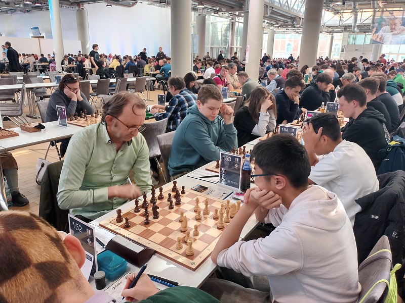 Bleiben noch Stefan Erdmann und Uli Wolf, die beide im Classic-A-Open schwere Kost vorgesetzt bekamen und dennoch auf (einmal knapp) 50% der Punkte kamen. Aber dafür waren sie durchweg mitten unter den besten Schachspielern in der großen Schwarzwald-Halle zugegen. Ein Erlebnis, auch von Brett 144 aus.