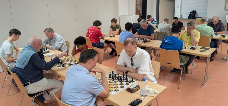 Trotz Brückentag kamen 18 Spieler, die um die Punkte rangelten. Damit wurde es das längste der möglichen Turniere, denn es waren vollrundig 17 Runden zu spielen (bei mehr Teilnehmern wären es nur 13 Runden Schweizer System gewesen).