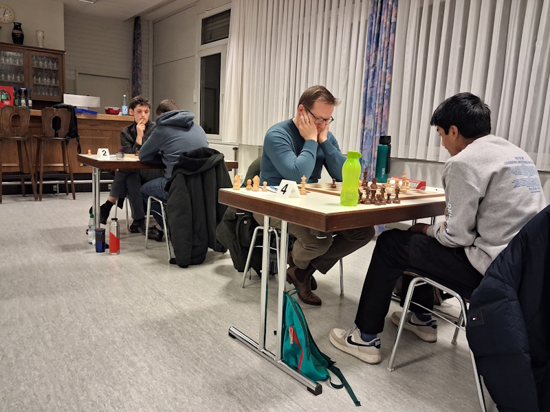 Es fing eigentlich ganz ordentlich an: Behrang Sadeghi hatte am Spitzenbrett schnell eine unverlierbare Remisstellung auf dem Brett und auch Ralf Dunsbach und Stefan Erdmann remisierten mit Schwarz problemlos. Dann ein Schock: Erwin Kaliski, der aus der Eröffnung eine scheinbar risikolos überlegene Stellung aufgebaut hatte, muss irgendwie den Faden verloren haben und die Kunde von seiner Niederlage kam dann doch sehr überraschend.