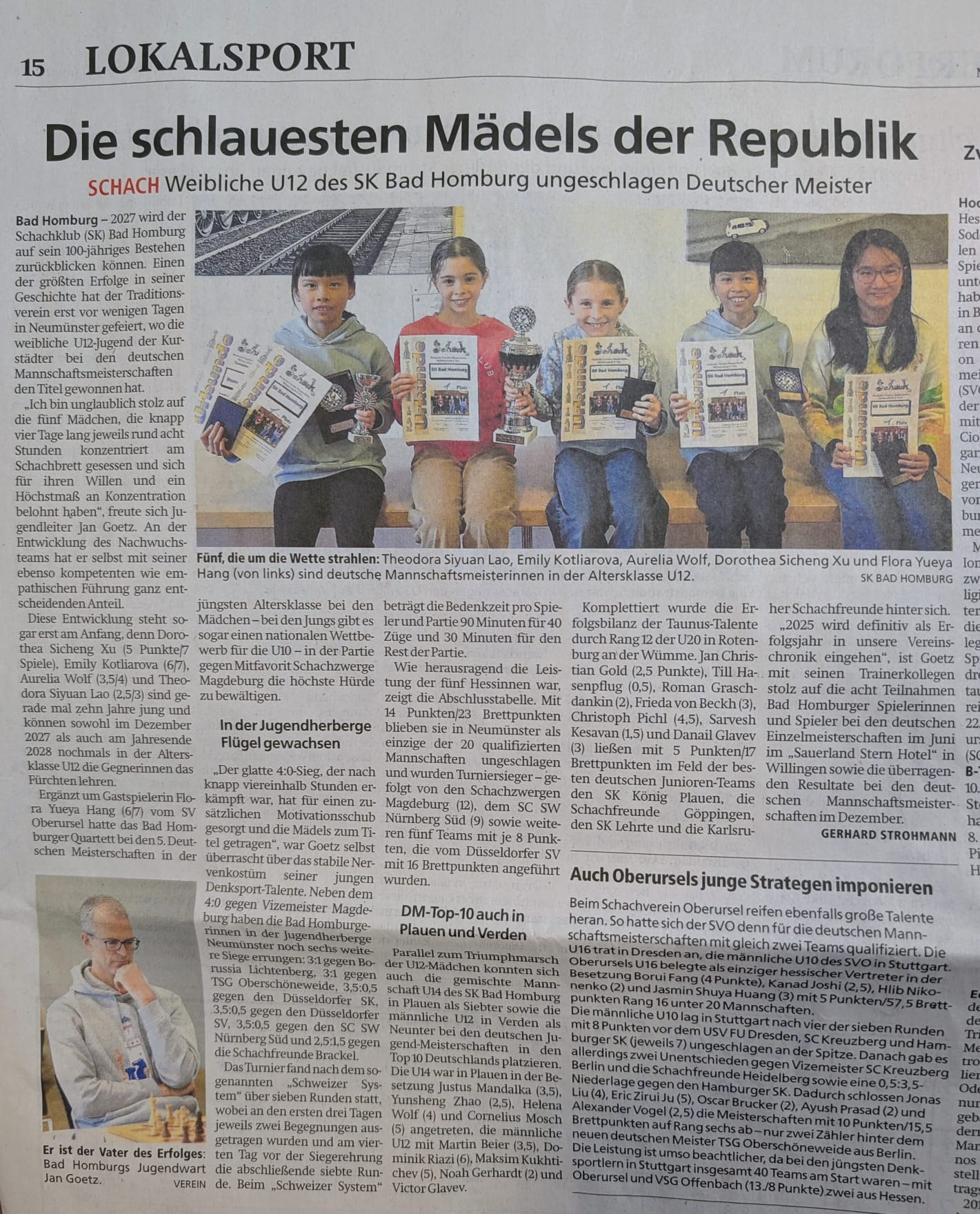 "Die schlauesten Mädels der Republik" betitelte die Taunuszeitung ihren Artikel zur Deutschen Meisterschaft! Vielen Dank an Gerhard Strohmann für den schönen Artikel!