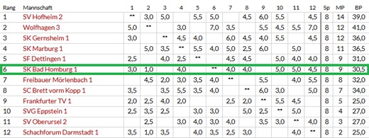 | Bad Homburg | Brett vor'm Kopp | 4,0:4,0 | ||