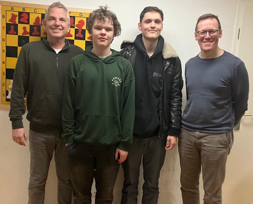 Bei Jan gab es nach der Eröffnung eine ziemlich „langweilige“ Mittelspielstellung mit symmetrischer Bauernformation. Ein Vorteil war nicht in Sicht, doch dann schwächte der Gegner freiwillig die Deckung seines Springers (Zitat Jan: „Das nimmt man gerne mit“). Jan baute binnen weniger Züge eine Druckstellung auf. Dann wurde es allerdings richtig kompliziert, und die Partie geriet ins Wackeln. Spannend für die Zuschauer, die das Brett umringten! Jan navigierte letztlich sicherer durch die Komplikationen und holte mit einer Umgruppierung seiner Türme den vollen Punkt.