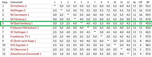 Zwar standen die verbliebenen Partien kritisch für Bad Homburg, aber am Ende holte Uli Wolf noch ein Remis. Jonas Lenz war das leider nicht vergönnt.