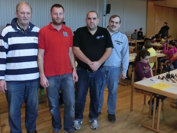 Ihnen war die Veranstaltung zu verdanken (vlnr): Paul Lenhart (SK Bad Homburg), Hendrik Raab (Sabt FTV 1860 Frankfurt), Martin Herwig-Päutz (Sfr. Friedberg) und Mathias Leibold (SV Fechenheim).