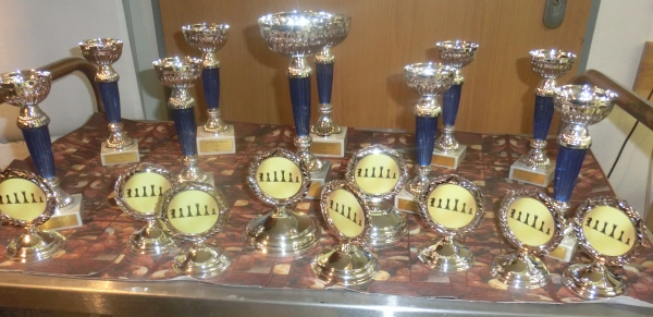 Und darum ging es: 10 Pokale. Für jede Vierer-Gruppe einen.